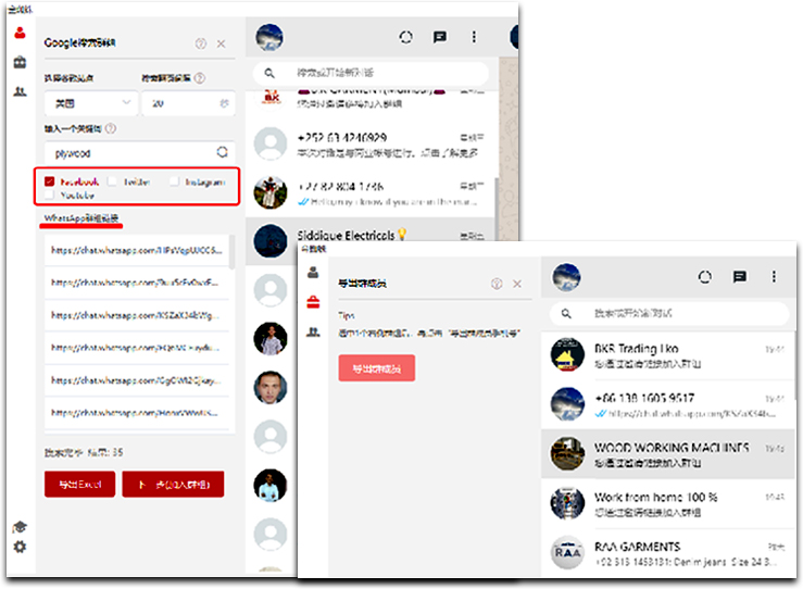 ● 根据博主的关注,一键挖掘关注账户的电话和其他资料,并识别WhatsApp账号;