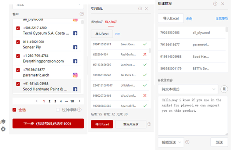 ● 一键验证WhatsApp账号存在;